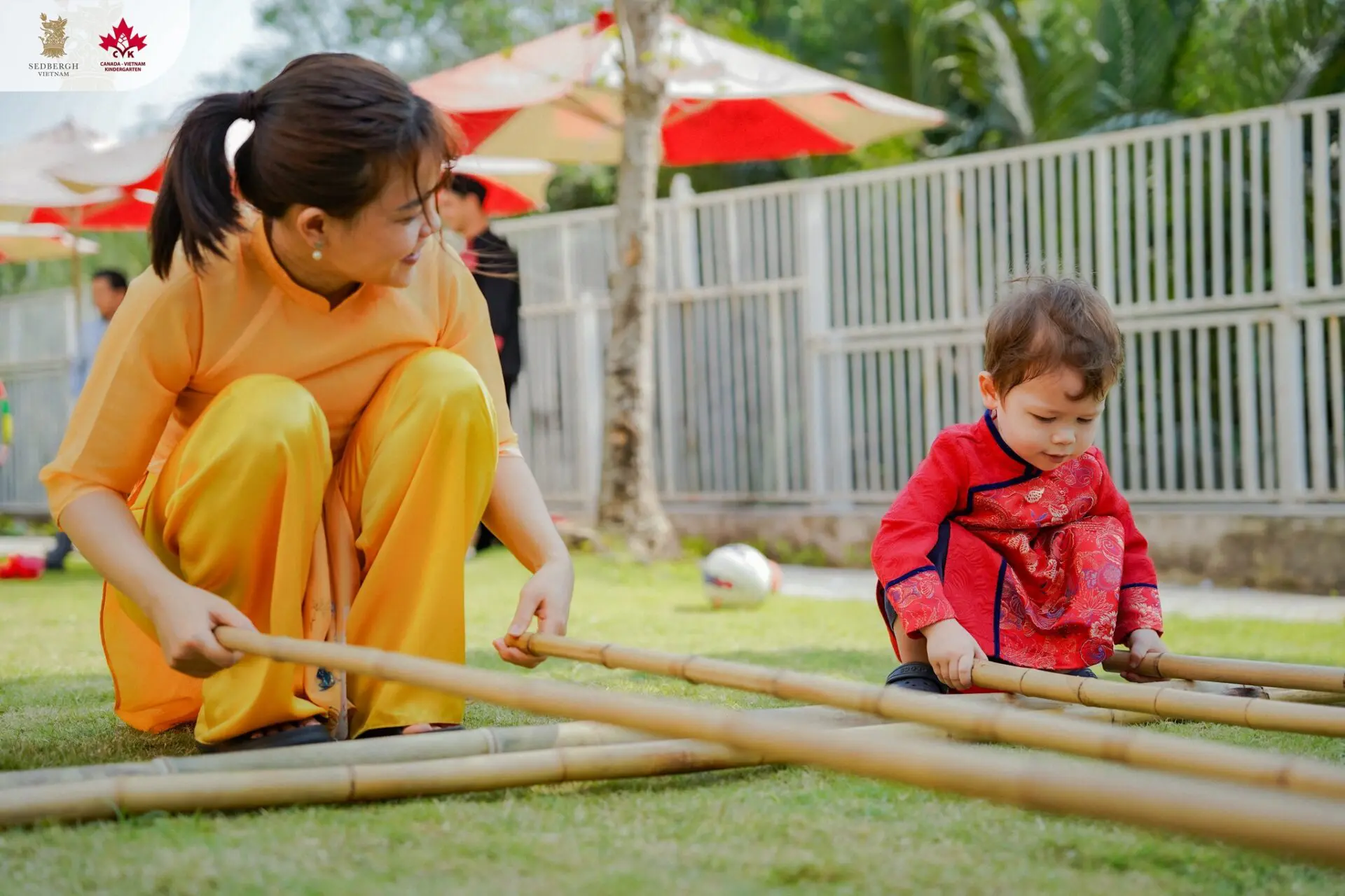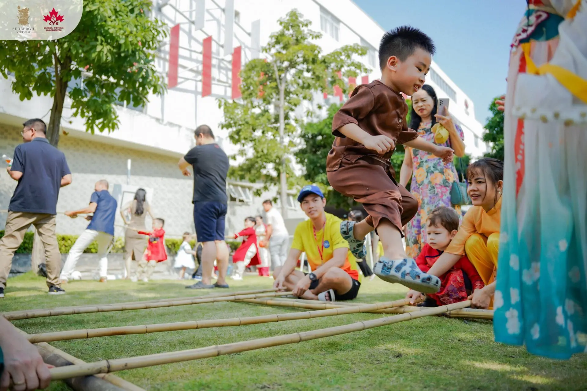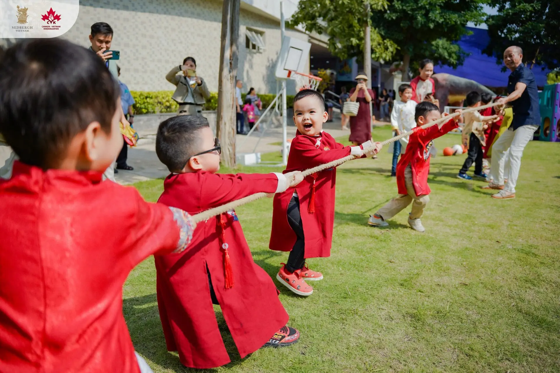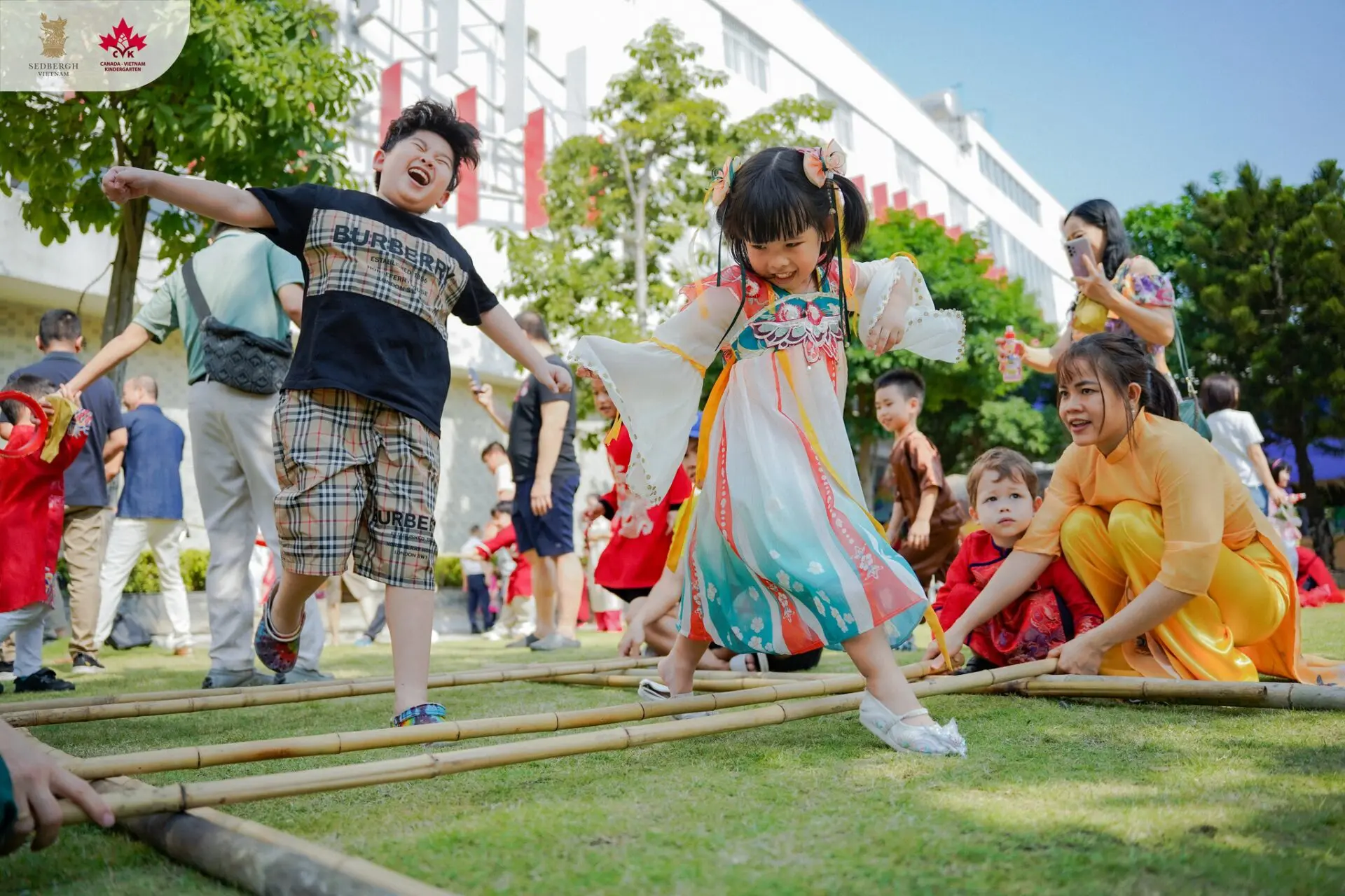 Từ những trò chơi dân gian như nhảy sạp, ném còn, đến các hoạt động đặc trưng ngày Tết như gói bánh chưng, xếp lá dừa, tất cả đều là những mảnh ghép quan trọng góp phần tạo nên một bức tranh Tết sống động, đầy màu sắc cho các thiên thần nhỏ tại Sedbergh Vietnam – CVK.