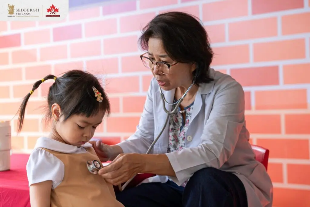 Bên cạnh đó, kiểm tra sức khỏe định kỳ giúp nhà trường và phụ huynh nắm bắt tình trạng sức khỏe hiện tại của các con mà còn tạo cho trẻ thói quen quan tâm đến cơ thể và cảm thấy an tâm khi gặp nhân viên y tế, hiểu rằng khám bệnh không hề đáng sợ mà rất thú vị.