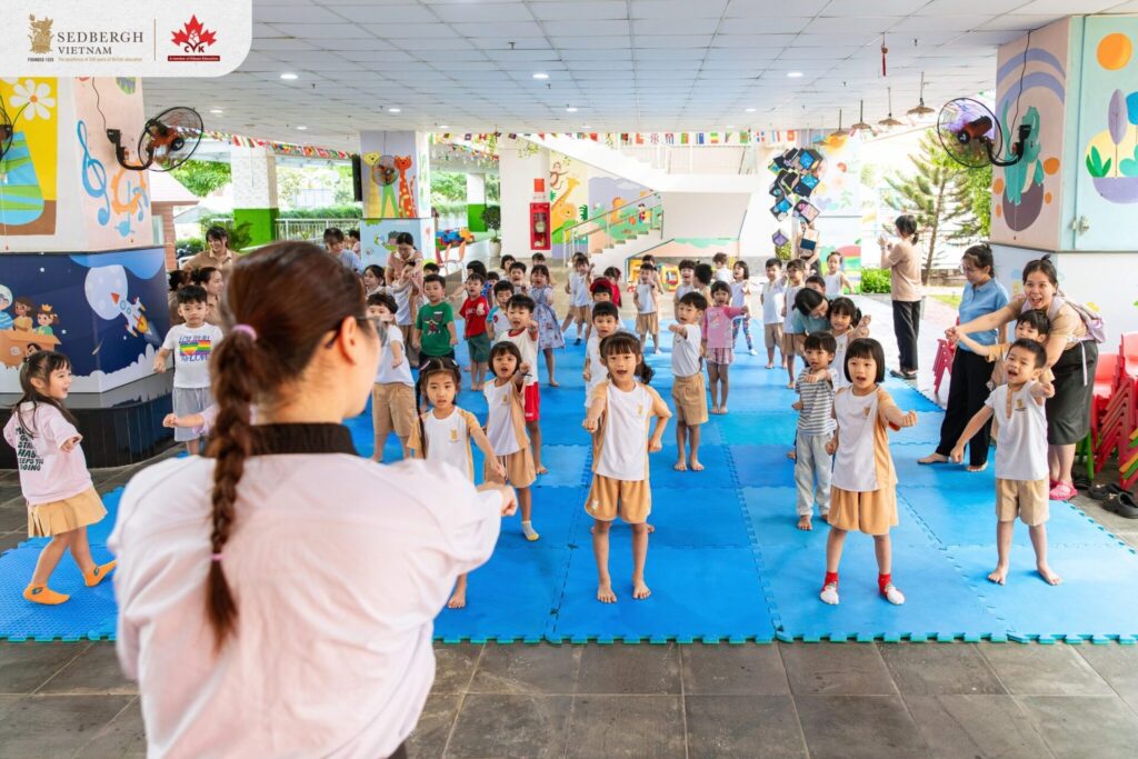 Thuộc khuôn khổ tuần lễ Sport Day, hoạt động Taekwondo giúp các bé Sói làm quen với một môn võ phổ biến trên thế giới qua những điều gần gũi như võ phục, màu sắc các đai và các động tác cơ bản. Mỗi bài tập không chỉ rèn luyện sức khỏe, sự dẻo dai mà còn giúp con học cách lắng nghe, ghi nhớ và thực hiện theo hướng dẫn. Việc tập luyện cùng bạn bè và thầy cô cũng giúp các “võ sĩ nhí” dần xây dựng sự tự tin, rèn tinh thần kỷ luật và tận hưởng niềm vui trong từng chuyển động – một trải nghiệm nhỏ nhưng tràn đầy năng lượng tích cực.