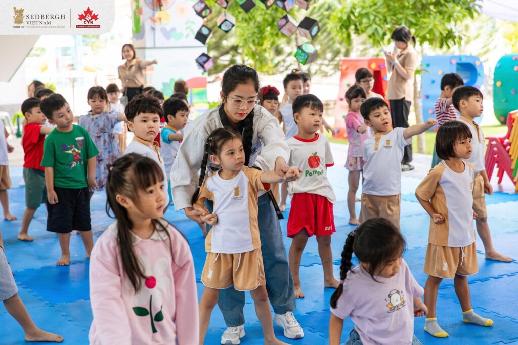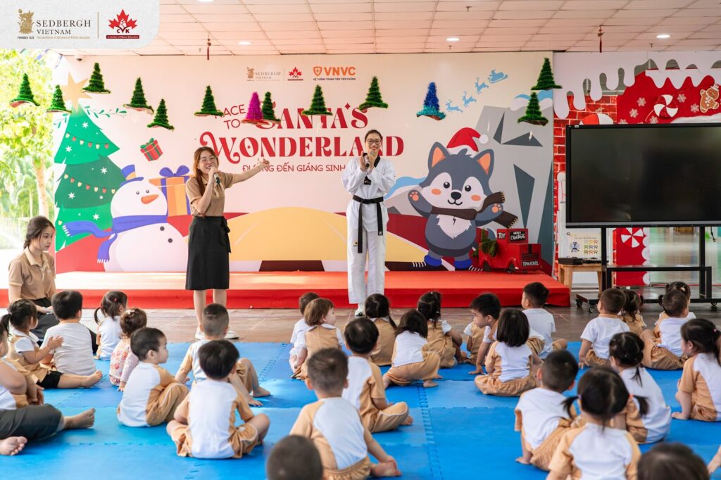 Thuộc khuôn khổ tuần lễ Sport Day, hoạt động Taekwondo giúp các bé Sói làm quen với một môn võ phổ biến trên thế giới qua những điều gần gũi như võ phục, màu sắc các đai và các động tác cơ bản. Mỗi bài tập không chỉ rèn luyện sức khỏe, sự dẻo dai mà còn giúp con học cách lắng nghe, ghi nhớ và thực hiện theo hướng dẫn. Việc tập luyện cùng bạn bè và thầy cô cũng giúp các “võ sĩ nhí” dần xây dựng sự tự tin, rèn tinh thần kỷ luật và tận hưởng niềm vui trong từng chuyển động – một trải nghiệm nhỏ nhưng tràn đầy năng lượng tích cực.